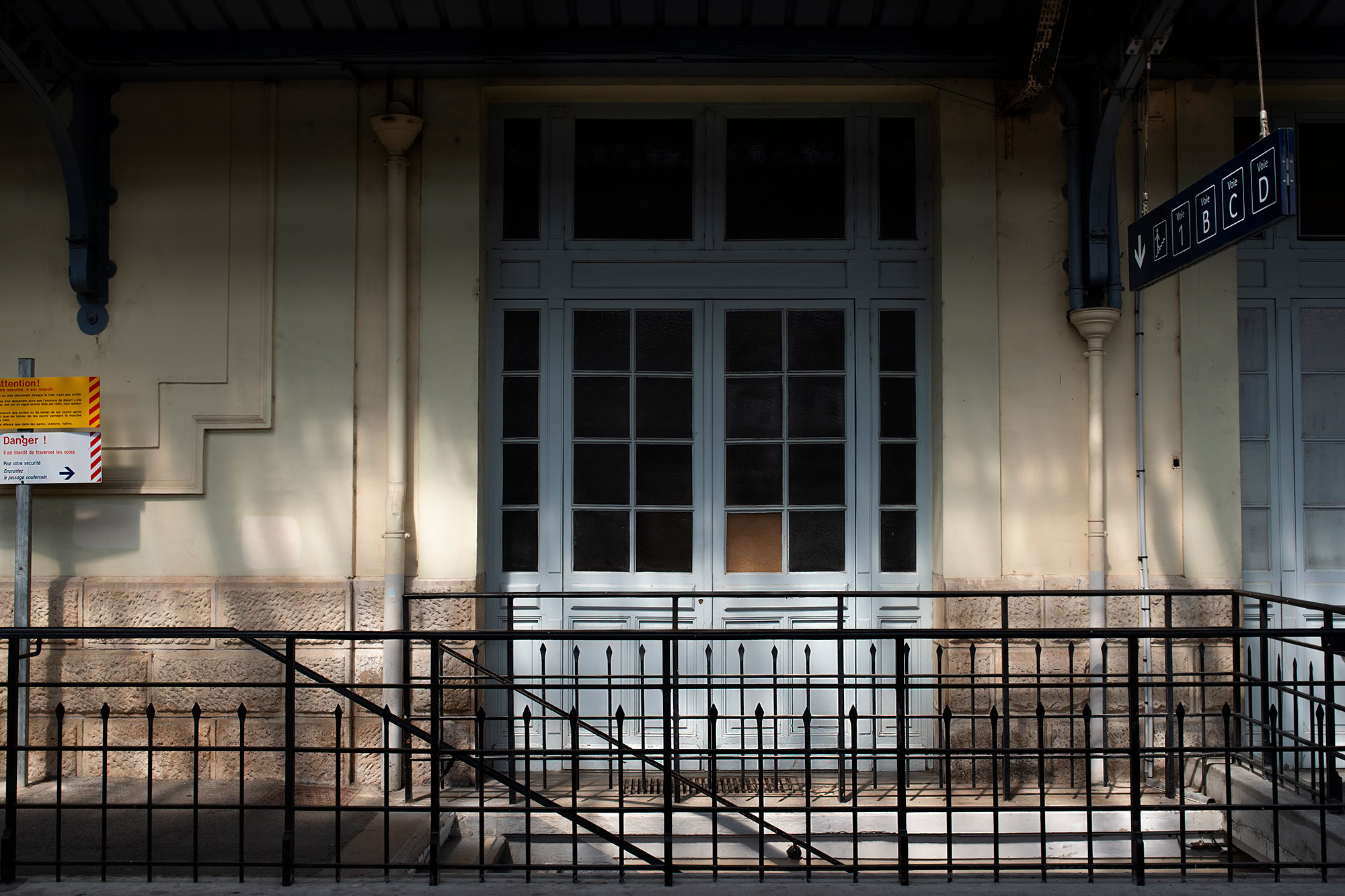 Du train, les paysages diffèrent des autres vues pittoresques surtout quand on s'intéresse à ce que l'on voit à l’arrêt, dans une gare ou en « pleine nature ». Ce qui s'offre à voir alors devient fortement arbitraire. Le mouvement cesse et l'on découvre une vue — provisoire, on le sait — d'un espace nouveau. Le temps d'installer notre regard, le train est déjà parti.
